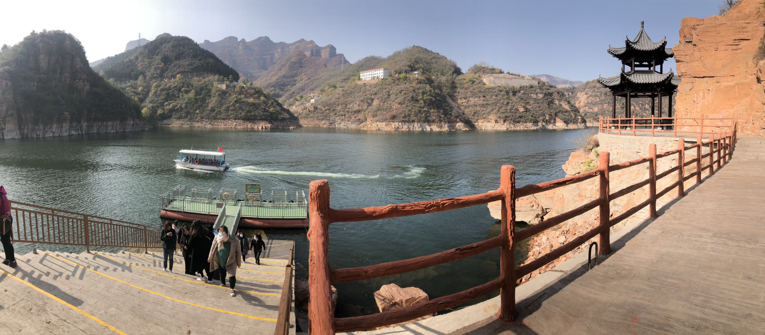 下車后我們乘坐擺渡小火車到達了京娘湖渡口,這里是需要乘船過湖然后登山。近半個多小時的游船,先東后西,環(huán)游整個湖泊,船上有導游全程講解,可以很好的了解京娘湖景色的內涵,以及“千里送京娘”的歷史典故。在游船上還可以觀看周圍眾多景點,均是崖壁怪石景觀。