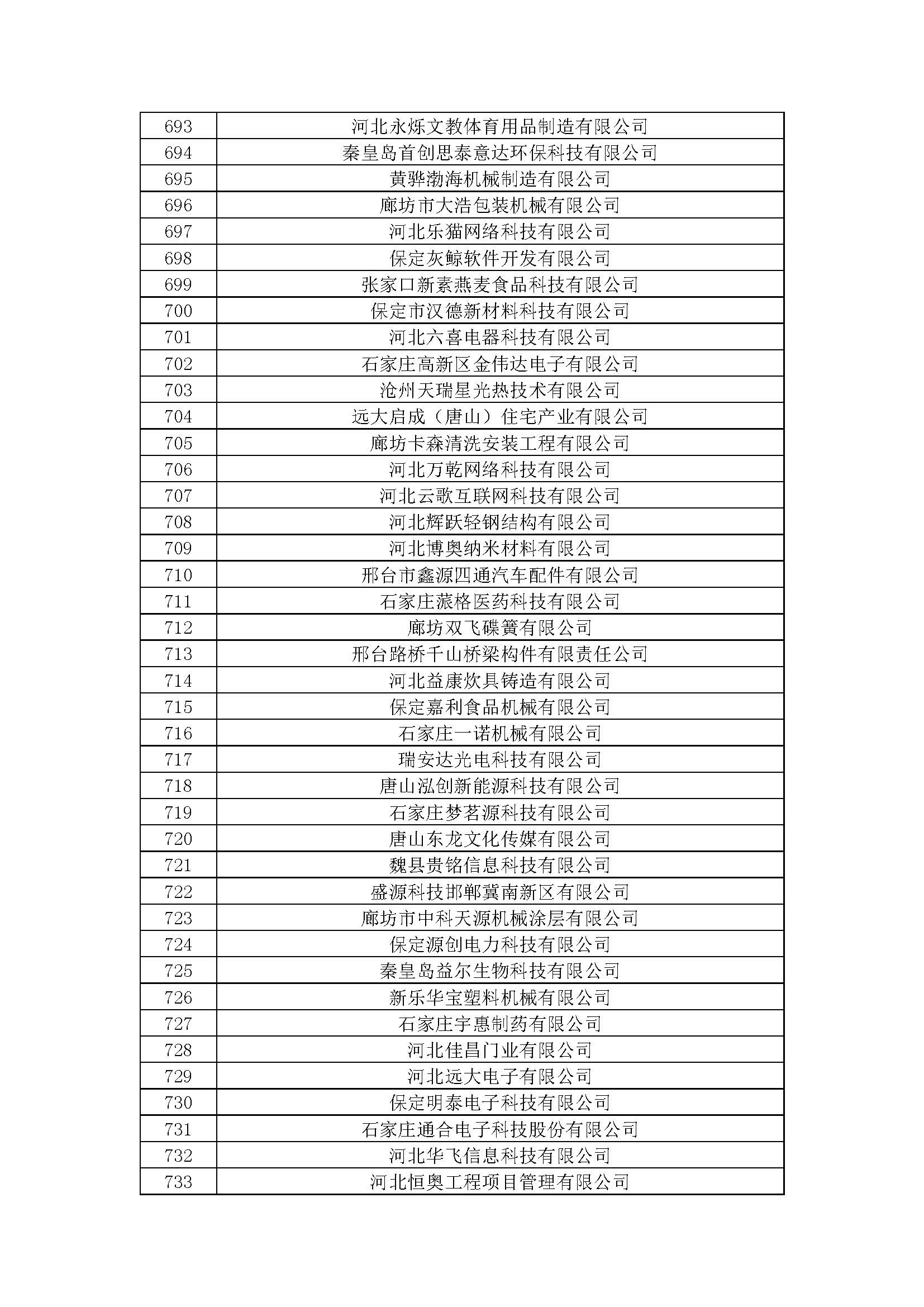 根據(jù)《高新技術(shù)企業(yè)認(rèn)定管理辦法》(國科發(fā)火〔2016〕32號)和《高新技術(shù)企業(yè)認(rèn)定管理工作指引》(國科發(fā)火〔2016〕195號)有關(guān)規(guī)定,現(xiàn)將河北省2021年第一批認(rèn)定報備的1979家高新技術(shù)企業(yè)名單(詳見附件)予以公示,公示期為10個工作日。