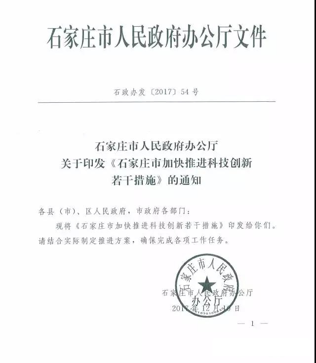 石家莊市政府辦公廳關(guān)于印發(fā)《石家莊市加快推進(jìn)科技創(chuàng)新若干措施》的通知