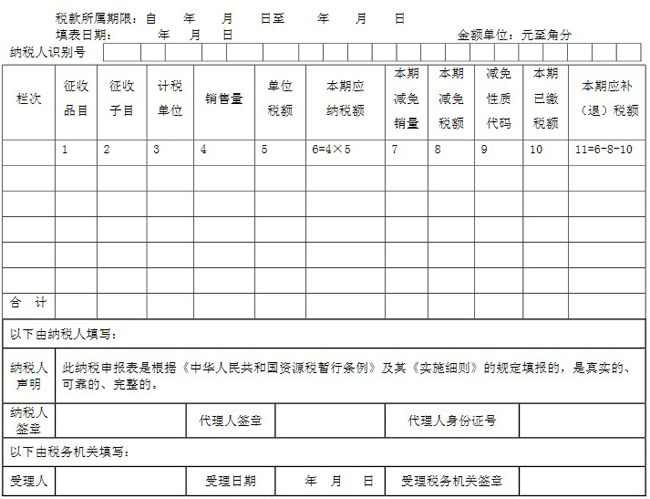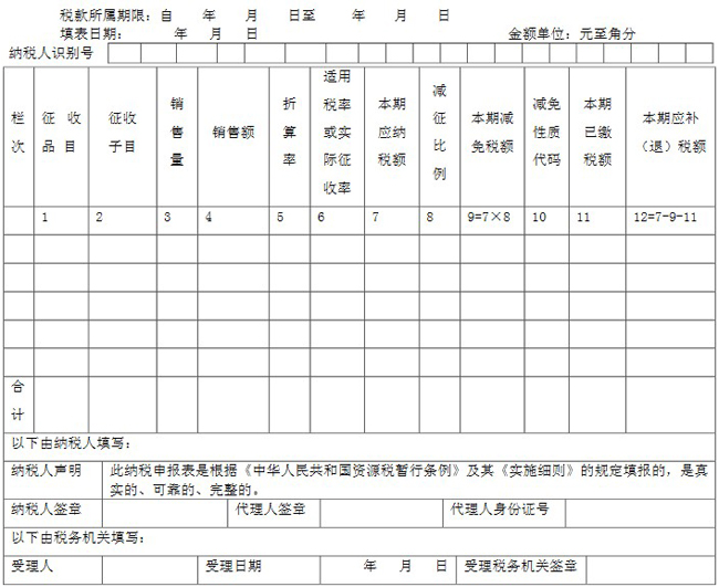 1.本表適用于資源稅納稅人填報(bào)(國(guó)家稅務(wù)總局另有規(guī)定者除外)。